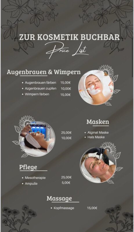 Preislisten 2026Preislisten ab dem 1 Januar 2026 Veröffentlicht am 2. Dezember 2025 von Dina Chiper Dina Chiper Head Spa Termine auch über Treatwell buchbar